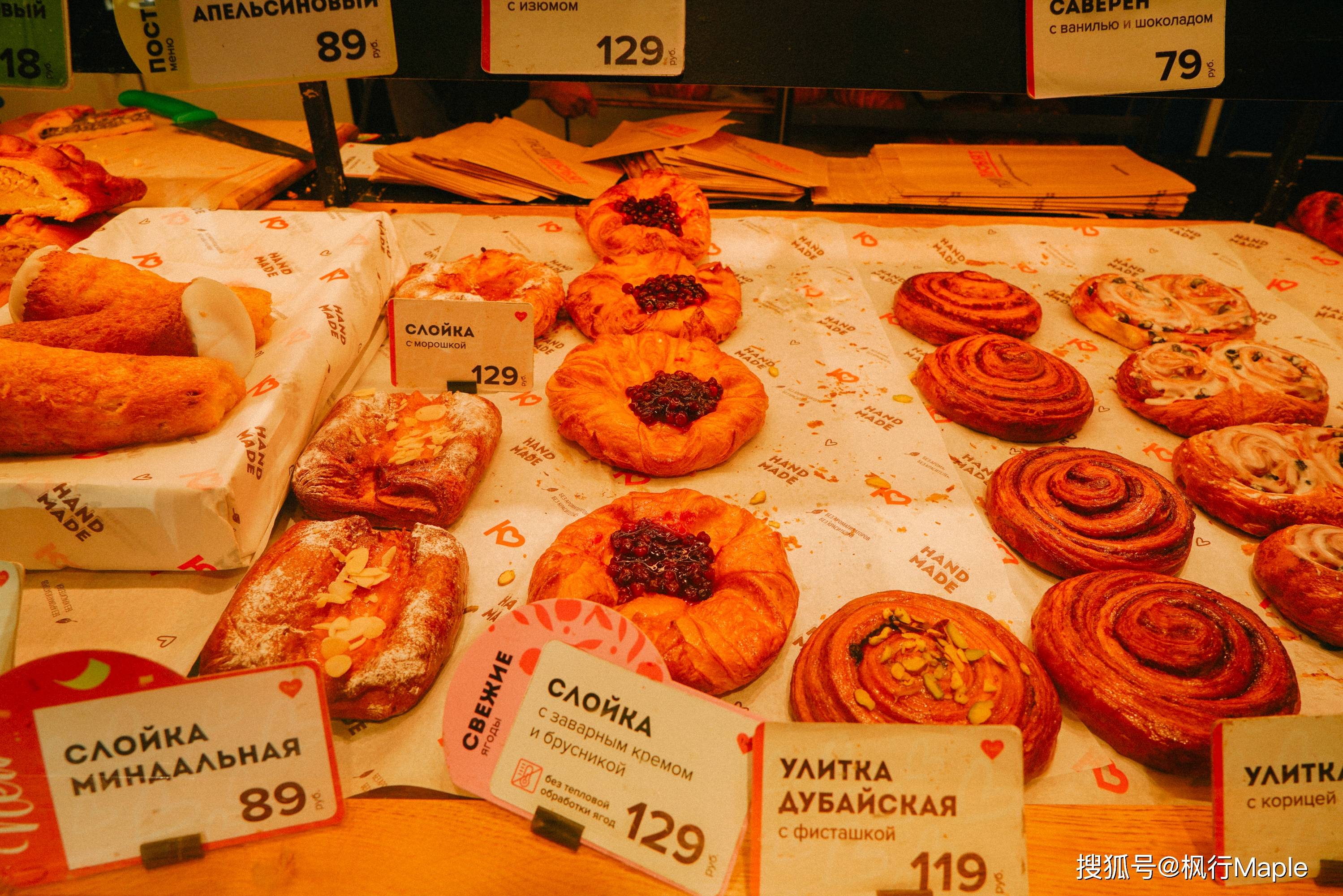 面包是俄罗斯人的核心主食,遍地大小面包店,超市里也有很多可选。