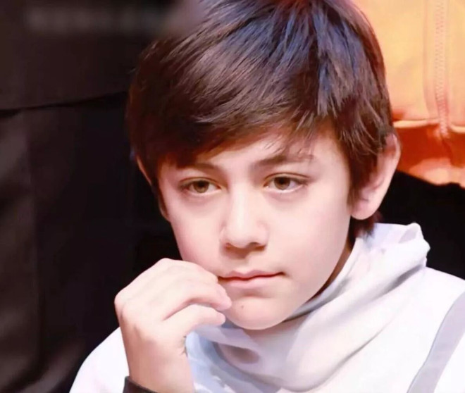 他的面部轮廓清晰,隐约可见少年初长成的胡茬,眼神沉稳,与《爸爸去哪儿》时期那个软萌卷发的小男孩判若两人。