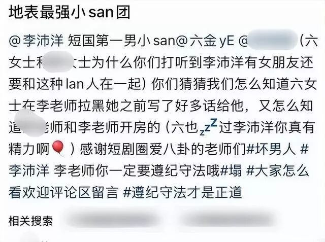 而且,根据之前的爆料,有消息称李沛洋在跟六金交往的同时,还跟另一位女士暧昧不清。也就是说,他大概率同时跟三个女生交往。