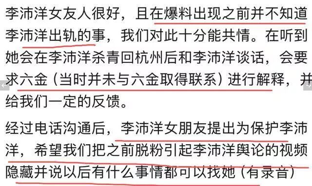 不得不说,现女友是真的脾气好啊,在这样的情况下,还请求爆料方删除可以引发李沛洋脱粉舆论的视频,说有什么事找她就行,生怕影响李沛洋的前程。