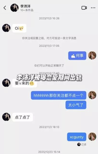 而李沛洋在知道这件事后,对于爆料方的信息“已读不回”,主打的就是一个“不回应”,估计想要冷处理这件事。