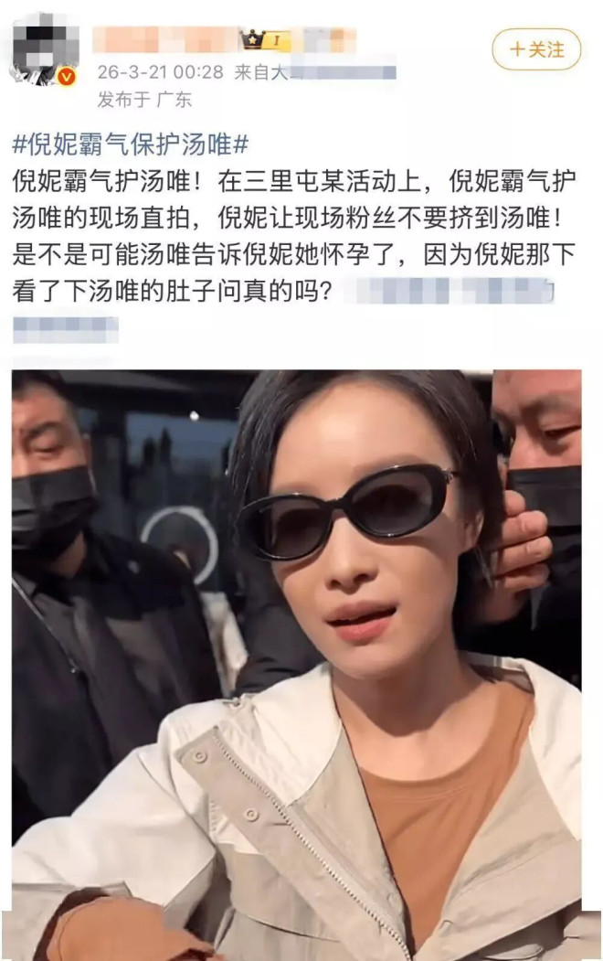 而在多张路人拍摄的合照中,她似乎有意无意地用手里的包或外套下摆遮挡腰腹,连走路的姿态也被形容“有些不一样”。