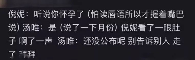 尽管听不清对话,但网友根据倪妮的反应和二人的肢体语言,纷纷脑补出“你是不是有了”“你怎么知道”之类的剧情,画面感十足。