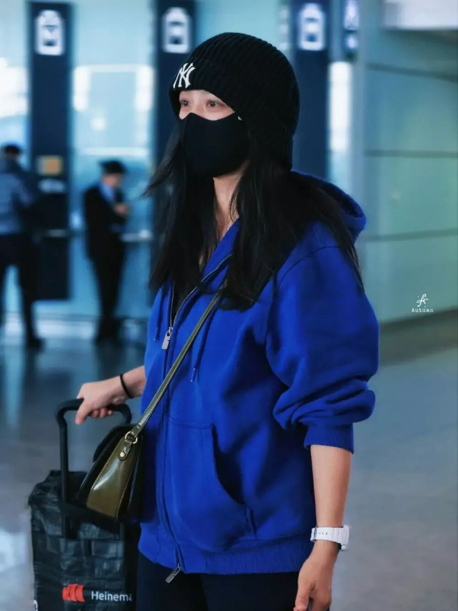 今年2月现身机场时,她的穿着就已偏向宽松。