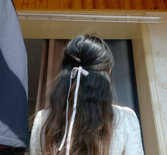 具体操作很简单:先用皮筋扎好一个低马尾,然后将丝巾穿过皮筋下方,用丝巾的延长部分缠绕发绳并将其遮盖,最后在发束下方打一个松松的蝴蝶结。这样一来,原本普通的马尾瞬间有了层次感,丝巾垂落的飘逸感,能在你转头或行走时,留下灵动的视觉残留。