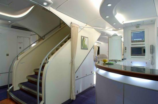 A380飞机主客舱吧台和楼梯(空客公司供图)