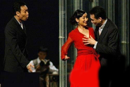 张柏芝某次演唱会换装,只换到一半时升降台突然升起,让张柏芝顿时不知所措,慌忙中用手来抵挡。