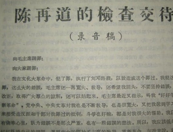 陈再道上将被迫做的检查,根据录音整理的文稿