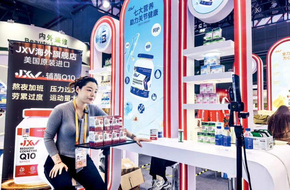 “1号链接拍一单3瓶,共540粒,直播间到手价1009元。膝盖、脚踝、肩膀、手腕、手指、脚趾都可以保护。18岁到100岁都能吃。94%的用户连续服用半年后,关节问题会得到缓解。”近日,在某电商平台Move Free(益节)官方旗舰店的直播间里,主播语速飞快,对着屏幕前的观众卖力地推销这款来自美国的氨基葡萄糖(即氨糖)产品。画面左上角的小视频窗口上方写着“明星都在吃”,左下角的弹幕不断滚动“已拍”提