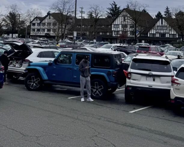要说大温最难停车的超市,很多人第一反应都是列治文的Costco。周末去过的人都知道,停车场里车多得像春运现场,找车位基本靠运气。按理说Costco已经算很良心了,车位宽、数量多,比不少商场都好停。但再好的停车场,也架不住有人把车停出“新高度”。这周末,Reddit上就疯传了一张照片:列治文Costco停车场里,一辆蓝色吉普直接横在两个车位之间,还把旁边一辆白色SUV撞得凹进去一块。最离谱的是角度。