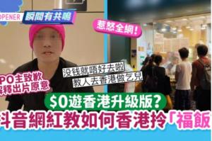 近日,网络上一则大陆网红“0元游香港,一天不花一分钱”的“穷游攻略”视频,引发轩然大波,网友对其中的“蹭慈善饭”表示不认同,并批评这种作法无底线。 香港生活成本高昂,近年不少大陆旅客选择“穷游”模式节省支出。 一名抖音网红发布的视频中,教网友如何“白嫖”在香港生存,甚至将慈善资源也纳入了“省钱秘笈”。视频里,该网红详细罗列了所谓的“0元游香港”方法。 他声称,港铁站免费饮水机随便喝,充电