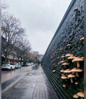陕西省西安这座干燥的北方古城,竟被连绵阴雨浸成了江南。近日,西安连续下雨一个多月,大雁塔受潮,城墙布满青苔,遍地长出蘑菇,民众纷喊傻眼。许多当地网友评论称:现在西安人都是“潮”人。 极目新闻报道,走在西安街头,可以发现路边的大树几乎每隔几步都能看到长满蘑菇,部分树干还长出了木耳等菌类生物。 除了植物,有些建筑也受持续降雨影响受潮。 大雁塔塔身被雨水打湿,部分区域出现潮湿的情况而变黑。大慈恩