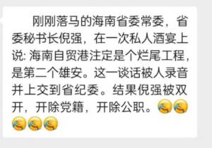 在当下中国官场,谈论雄安就是妄议习近平,妄议习近平就等于妄议中央,妄议中央就是头等大罪。 海南省委常委、省委秘书长倪强因酒后私议海南自贸港或沦为“第二个雄安”而遭双开(开除公职、开除党籍)。 作为省委常委,他为海南的重大投资项目的前途担忧,这本是份内之事,却不料祸从口出。这是什么世道?&nb