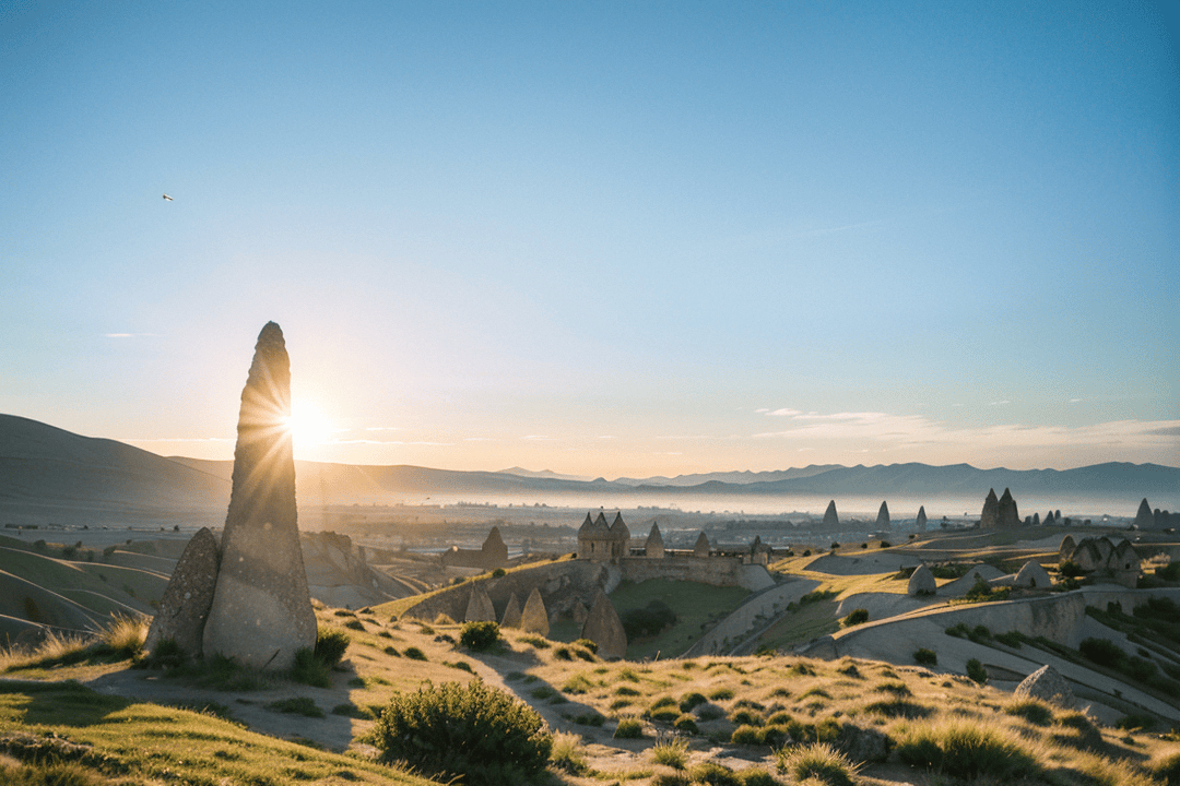 在安纳托利亚高原腹地,卡帕多奇亚以其独特而克制的自然地貌,形成了一片与周围环境截然不同的区域。这里没有连绵起伏的群山,也缺少茂密的森林,却凭借长期自然作用塑造出的岩石形态与开阔空间,展现出一种安静而耐看的高原风光。卡帕多奇亚最具代表性的景观,是遍布高原的岩柱与岩谷。这些岩石由火山岩构成,经过长时间的风化与侵蚀,形成了高低不一、线条分明的结构。岩石表面色调柔和,多为浅灰、淡黄或米色,在阳光照射下显得